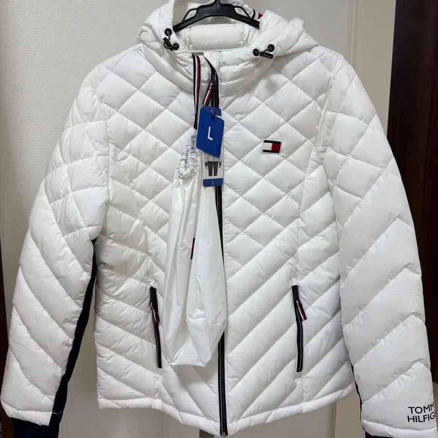 타미힐피거 후드 부착 퀼팅 자켓 화이트 수납 봉투 포함