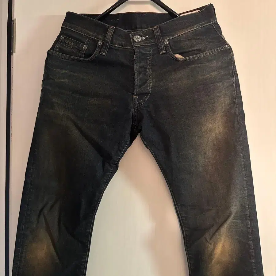 G-STAR RAW 블랙 데미지 슬림핏 데님