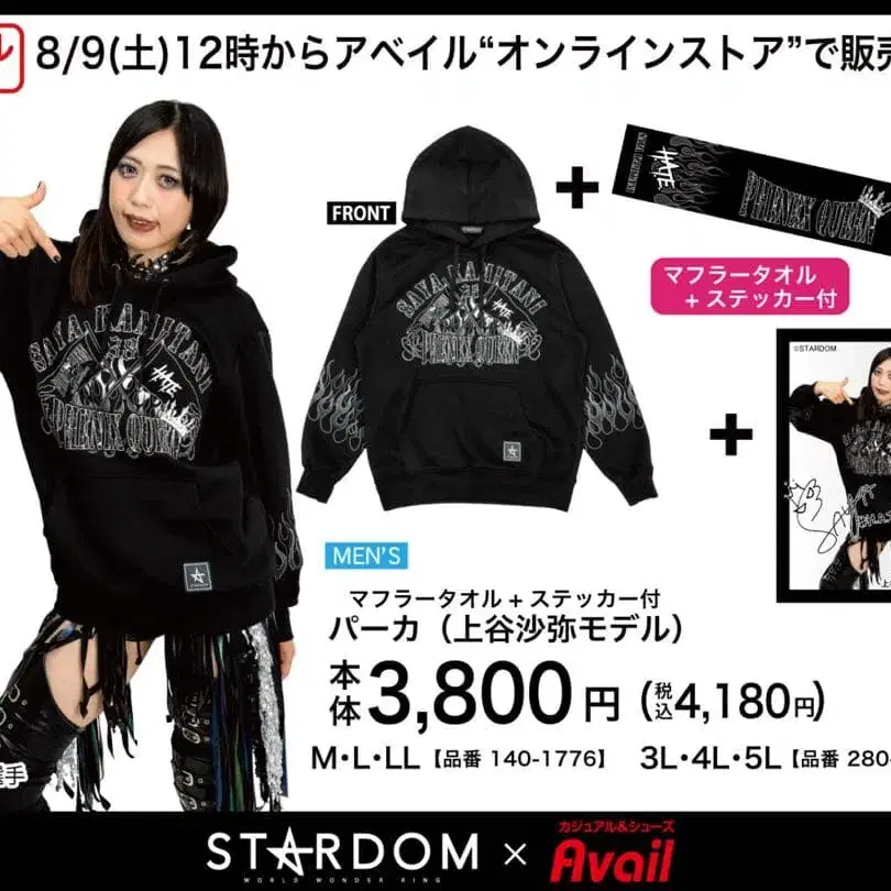 카미타니 사야 선수 모델 타월 포함 속기모 프린트 풀 후드티 (스타덤)