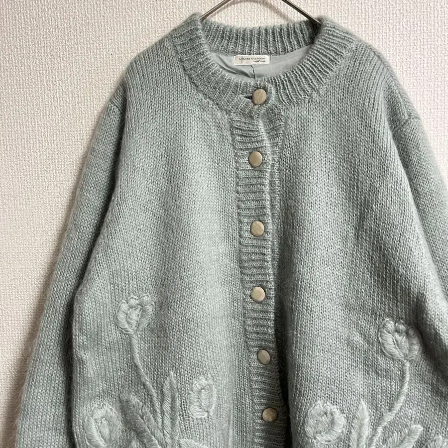 • 빈티지 모헤어 니트 가디건 입체 꽃 자수 손 자수 A5