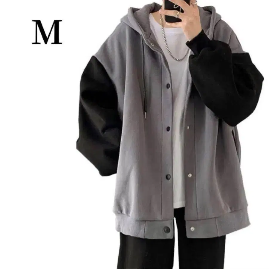 • 남성용 집업 후드티 루즈핏 긴팔 무지 후드 부착 스타일리시 M