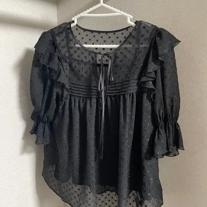 Lily Brown 도트 무늬 프릴 블라우스 & 롱 스커트 셋업