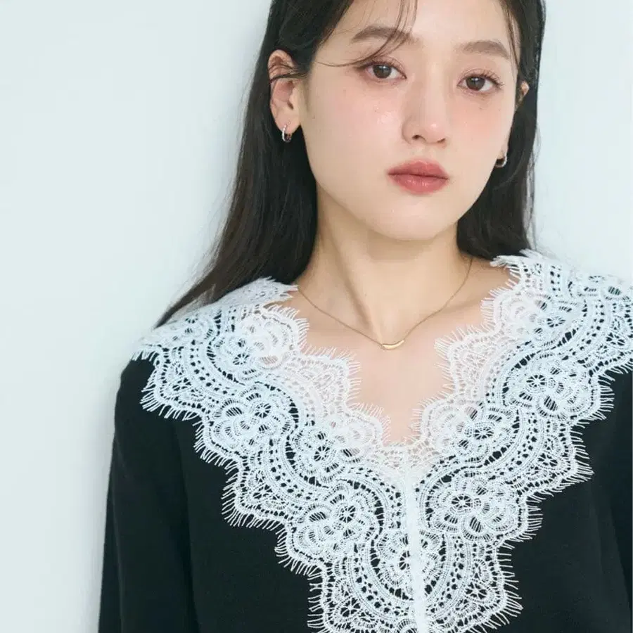 V넥 레이스 니트 basement