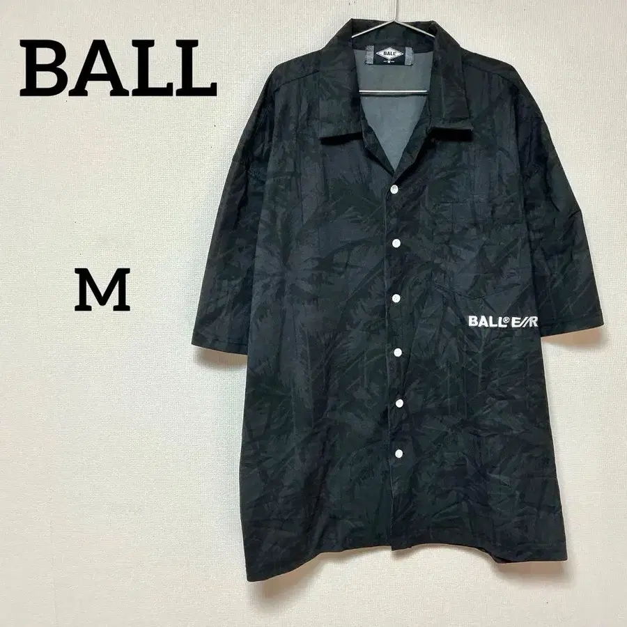 BALL 올 패턴 반팔 셔츠 로고 자수 블랙 M 사이즈