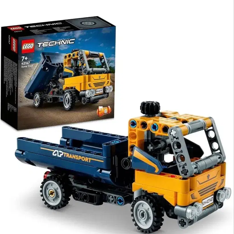 자동 번역되었어요. 원문보기LEGO Technic 트럭 세트, 파랑과 노란색 디자인, 7세 이상 대상.