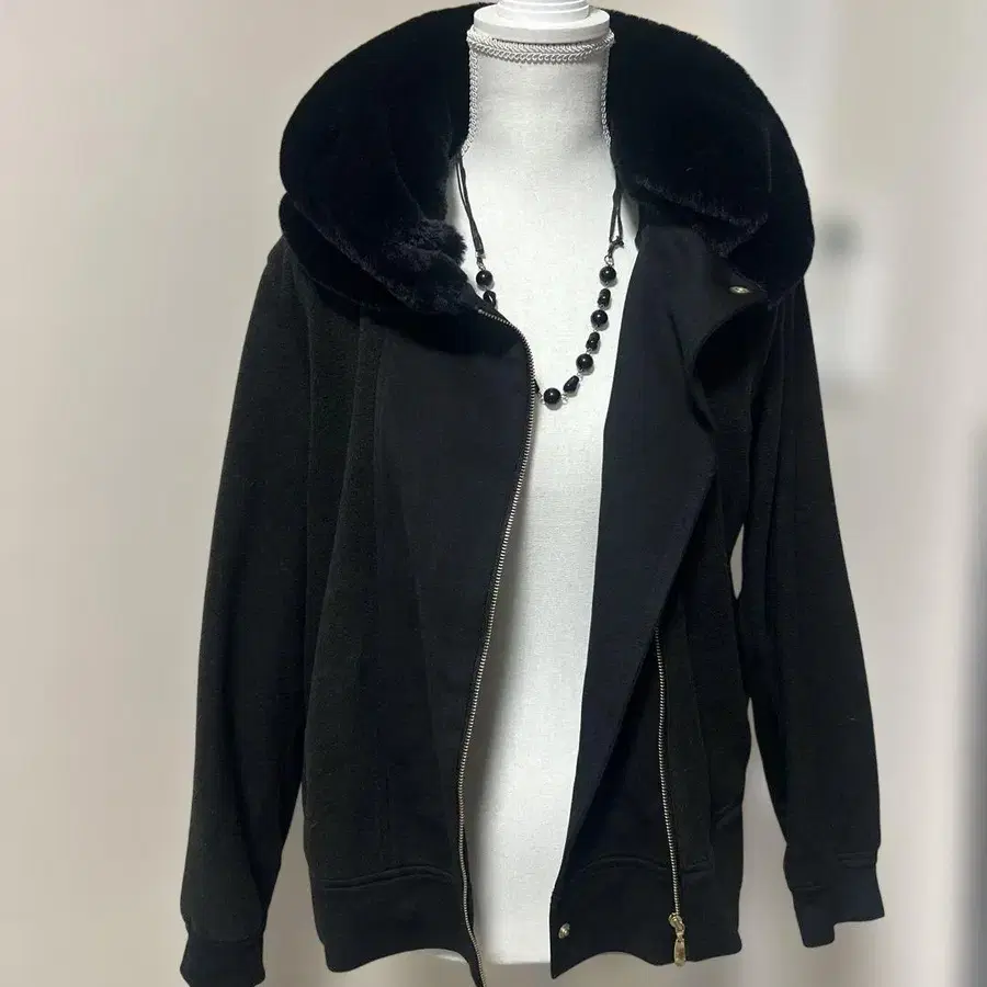 소클로스 블랙 플리스 퍼 후드 점퍼