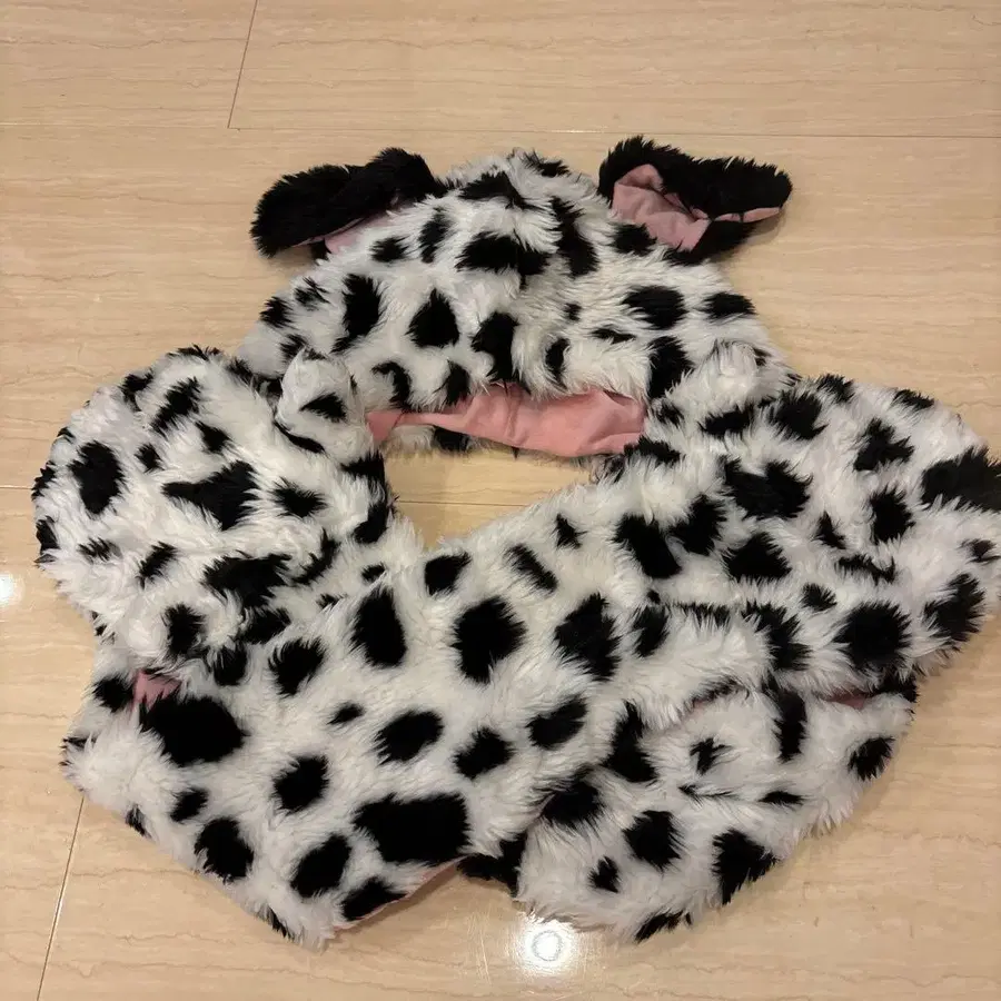 달마시안 후드 부착 퍼 캡 머플러