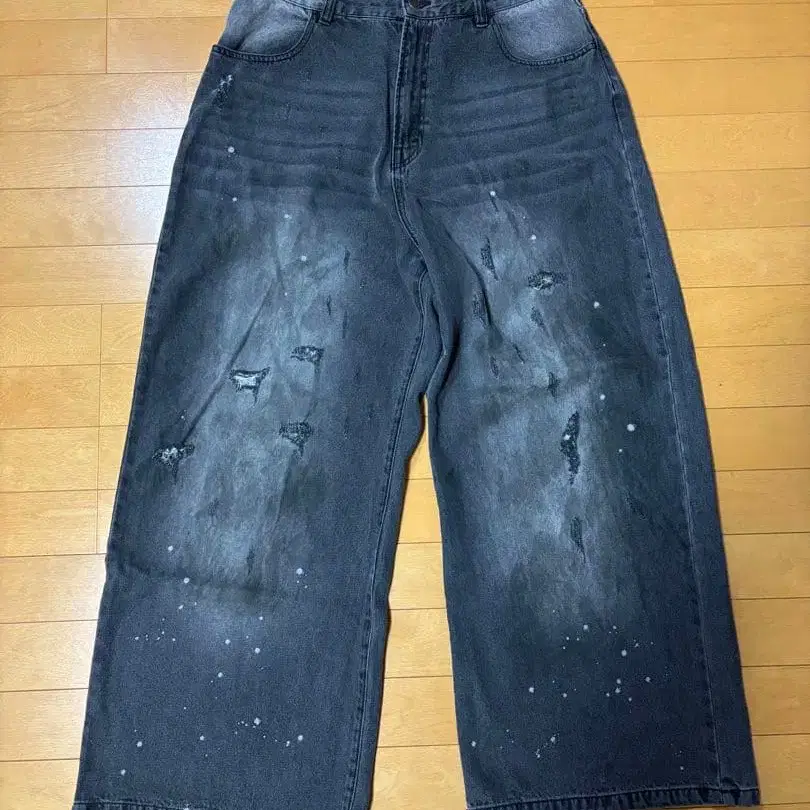 kutir 데미지 가공 와이드 팬츠 다크 그레이