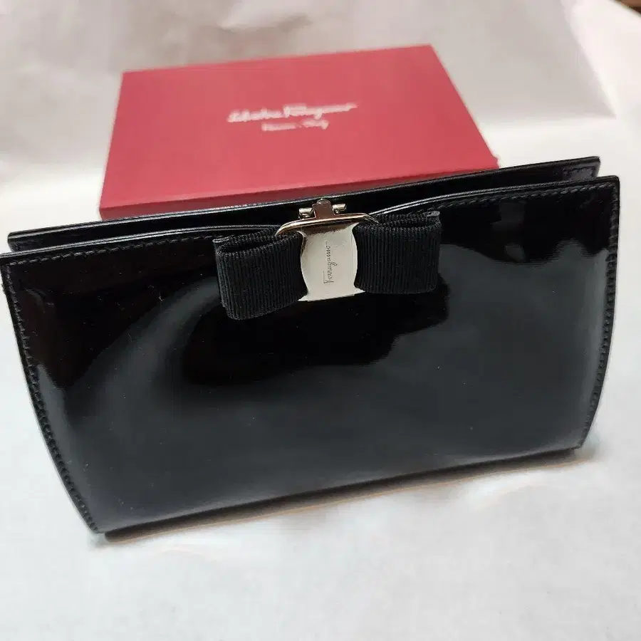 페라가모 파티백 핸드백 블랙 에나멜 리본 포함