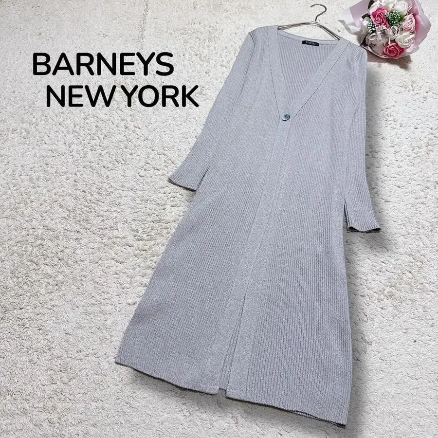 [ 바니스뉴욕 ] 실크 혼방 긴팔 리브 니트 롱 가디건 그레이 F