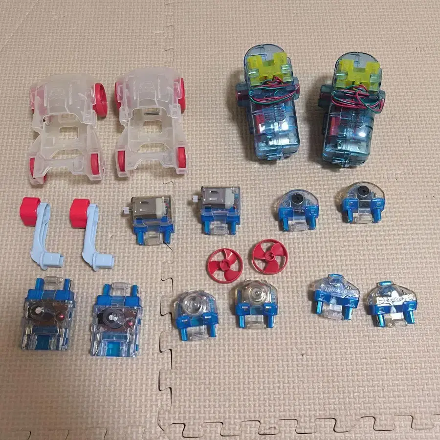 미니카 부품 세트 투명 파랑 빨간색
