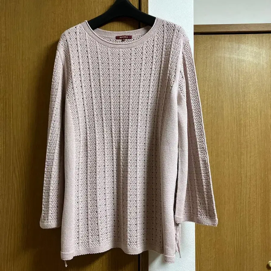 AMACA 핑크 리브 니트 긴팔