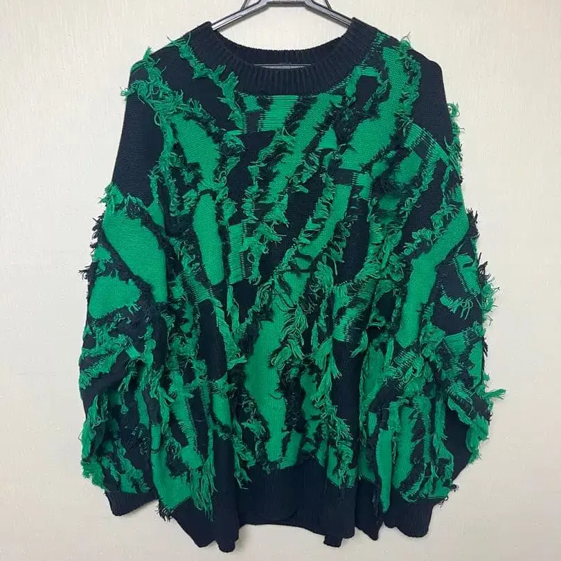 MAISON SPECIAL 프린지 자카드 크루넥 니트