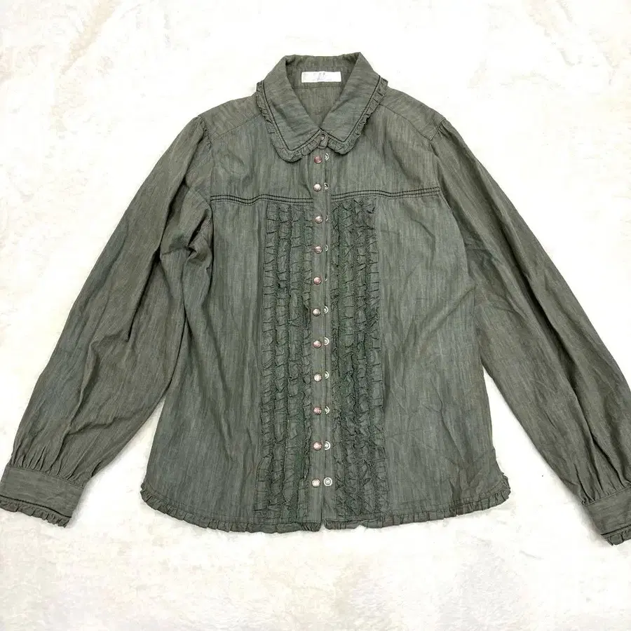 핑크하우스 블라우스 피코 프릴 탁한 그린