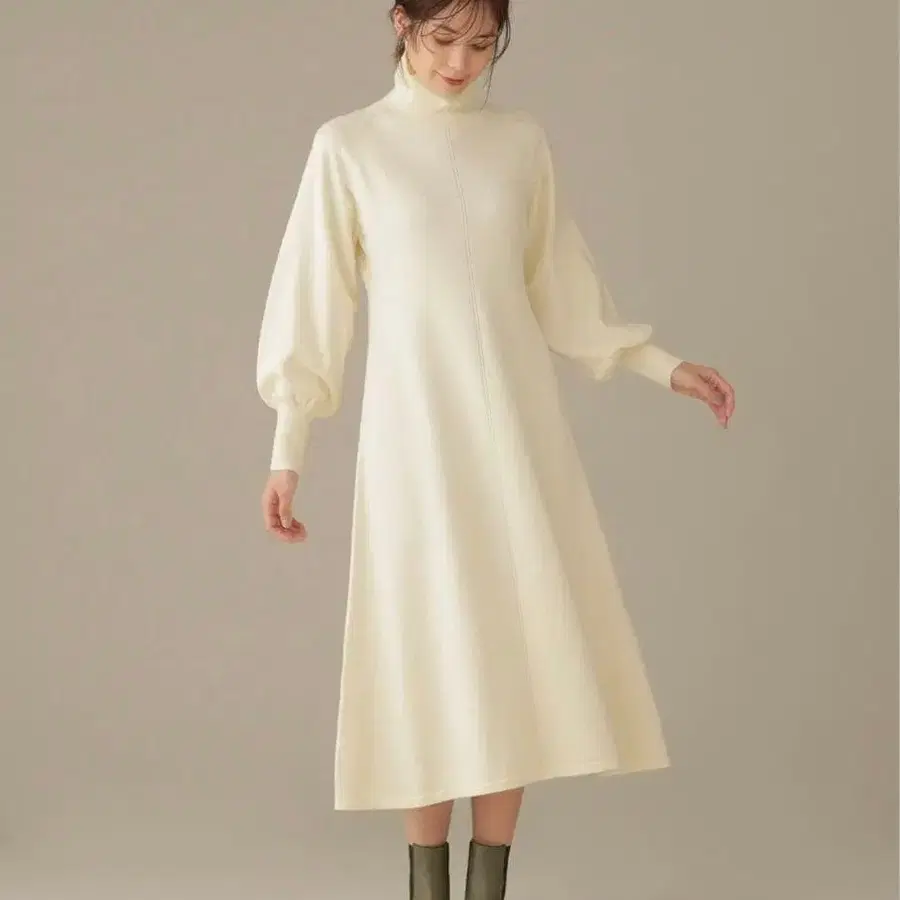 벌룬 소매 하이넥 니트 원피스
