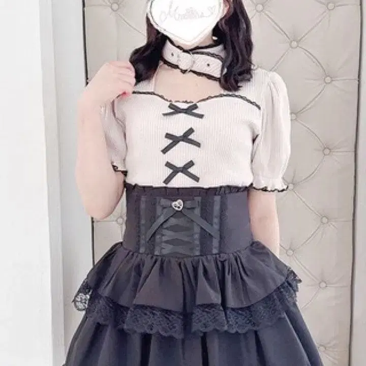 MA*RS 하트 벨트 포함 골지 반팔 상의 핑크