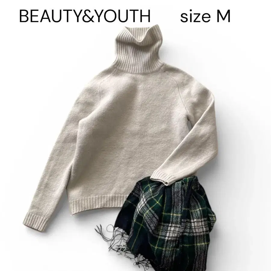 새상품급 ] 뷰티앤유스 울 캐시미어 터틀넥 니트 M 화이트