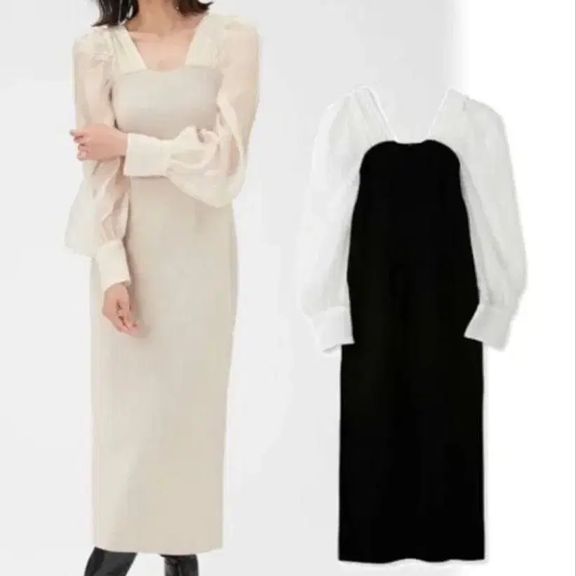 프레이 아이디 오간 슬리브 스퀘어 니트 원피스