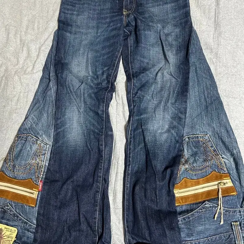 리메이크 데님 플레어 디자인 데님 팬츠 플레어 데님