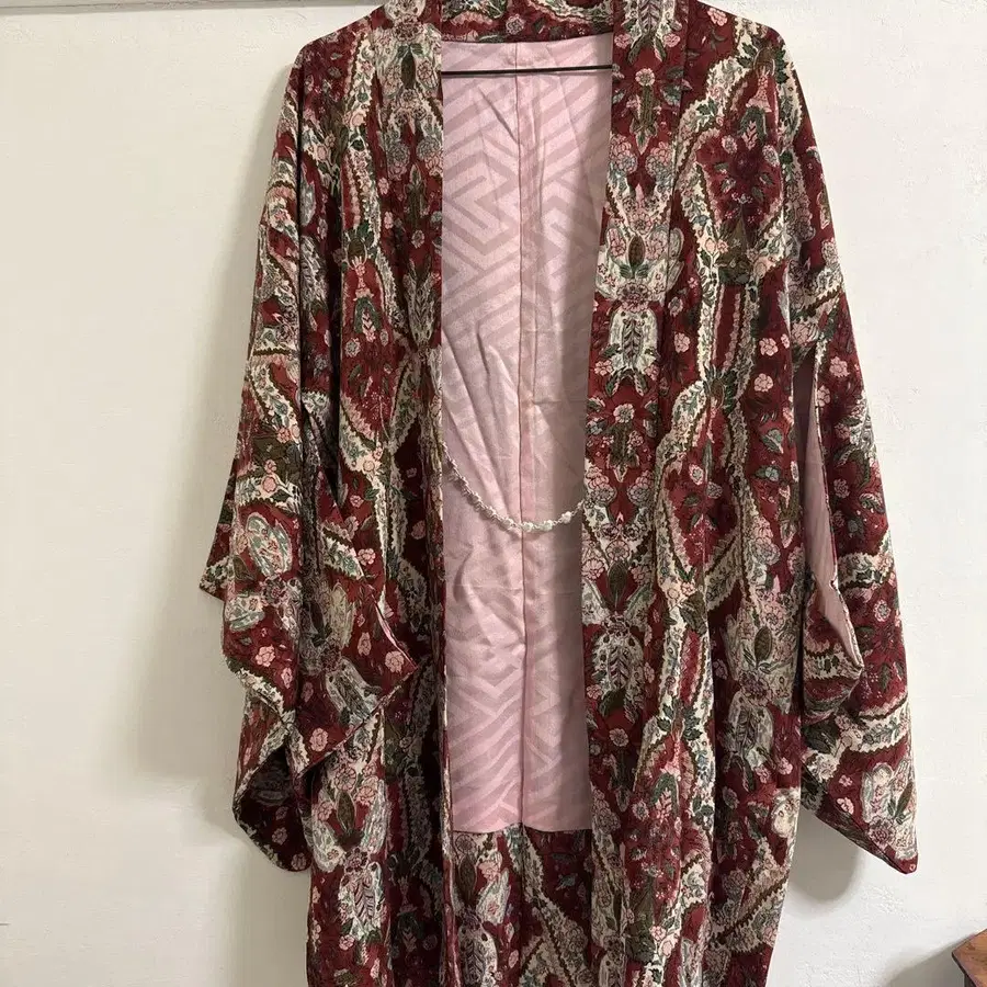꽃무늬 롱 기장 겉옷 빨간색과 그린