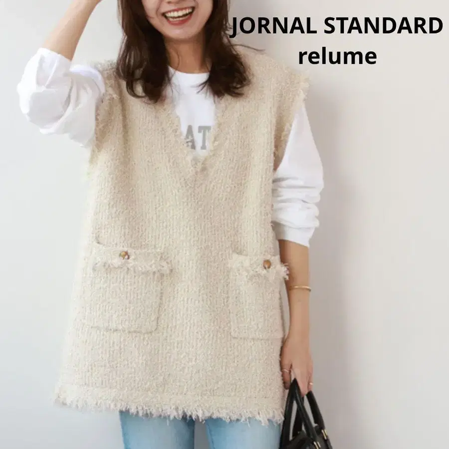 JORNAL STANDARD 아이보리 니트 롱 베스트 골드 버튼