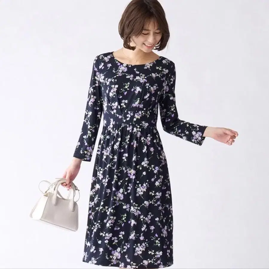 mimigrant 꽃무늬 긴팔 원피스 네이비