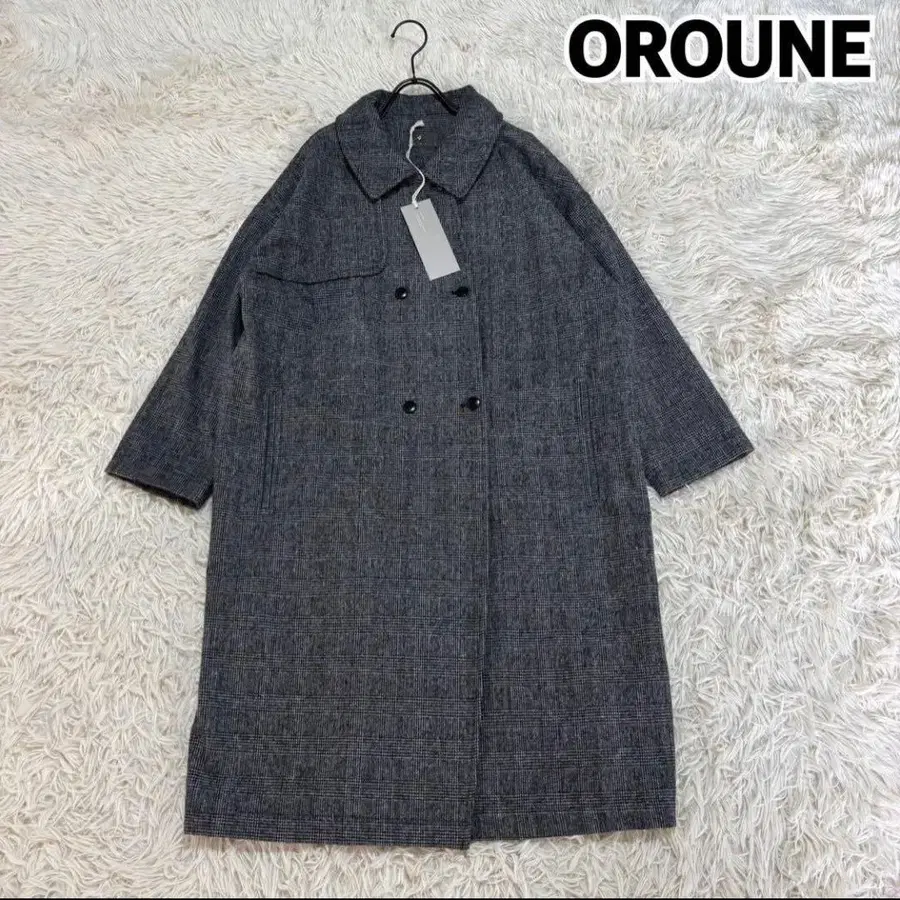 택 포함 새상품. 오로네 특유의 고급 울 비버 소재 (기모)를 사용한 롱 기장의 벌룬 코트입니다.