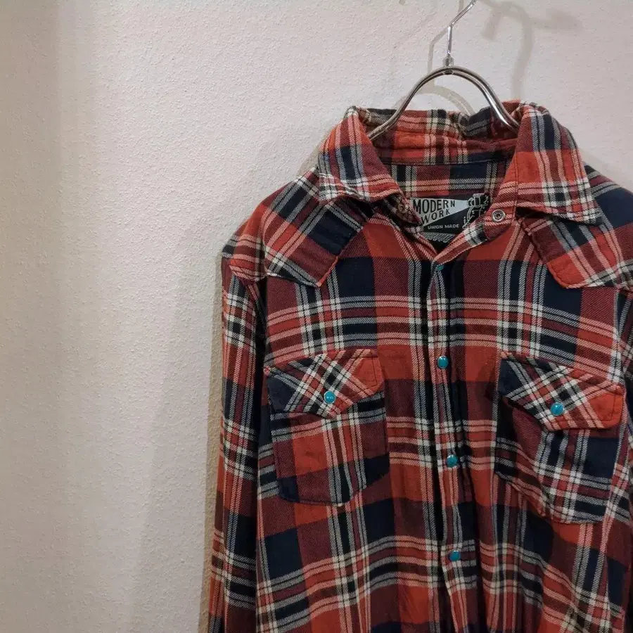 모던워크 MODERN WORK 플란넬 셔츠 웨스턴 셔츠 체크 빨간색