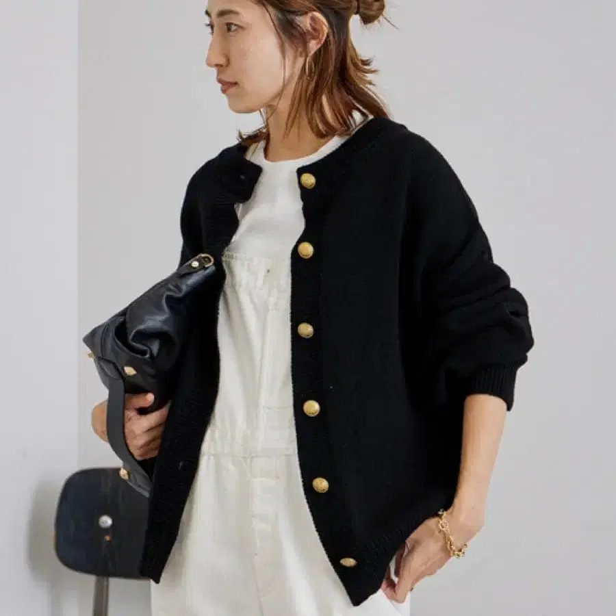 프레임워크 2WAY 골드 버튼 가디건 블랙