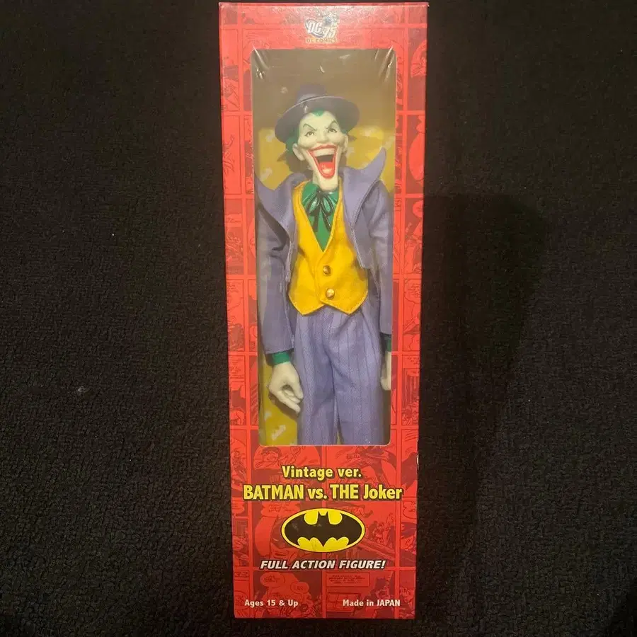 DC COMICS 75주년 [ BATMANvs.THEJoker 풀 액션 피규어 (배트맨 & 조커 액션 피규어) ] [ 상품명: DC COMICS 75주년 [ 빈티지 Ver. BATMAN vs. THE Joker 풀 액션 피규어 (배트맨 & 조커 액션 피규어) ] ] [ 패키지 사이즈: 세로 32cm 가로 10cm 깊이 6cm (피규어는 1/6 12인치입니다.) ] [ 생산국: JAPAN ] [ 제조사: TAKARA TOMY ENTAMEDIA (타카라토미 엔타미디어) 선앤스타 ] [ 제조 연대: 2010년 ] 2010년, 창립 75주년을 맞이한 DC 코믹스의 기념 로고가 부착된 패키지의 액션 피규어로, 60년대 피규어를 이미지화한 스타일의 조커입니다. 바디는 와이어가 들어간 벤더블 피규어이므로 가동 가능! 제한은 있지만 포즈도 취할 수 있고, 자립합니다! 얼굴과 양손, 신발 등은 소프트 비닐제. 의류는 제대로 된 원단을 사용했습니다. 지팡이가 포함되어 있습니다. 창 부분의 소재 강도가 약합니다. (얇은 필름 같은, 랩 같은 소재입니다.) 그 때문인지, 흠집이 곳곳에 있습니다. 사진 2, 3번째에서 확인 부탁드립니다. 상자 자체는 미개봉입니다.
