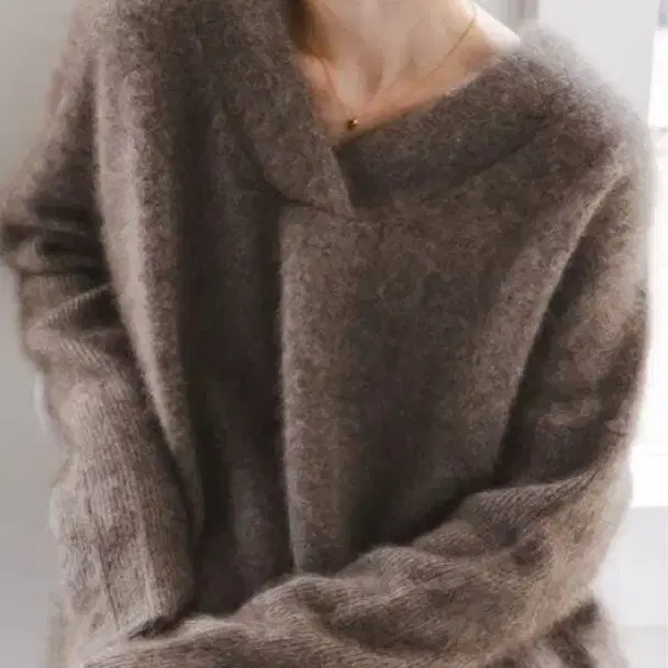 새상품급 Plage 퍼 V넥 니트 풀오버 다크 브라운
