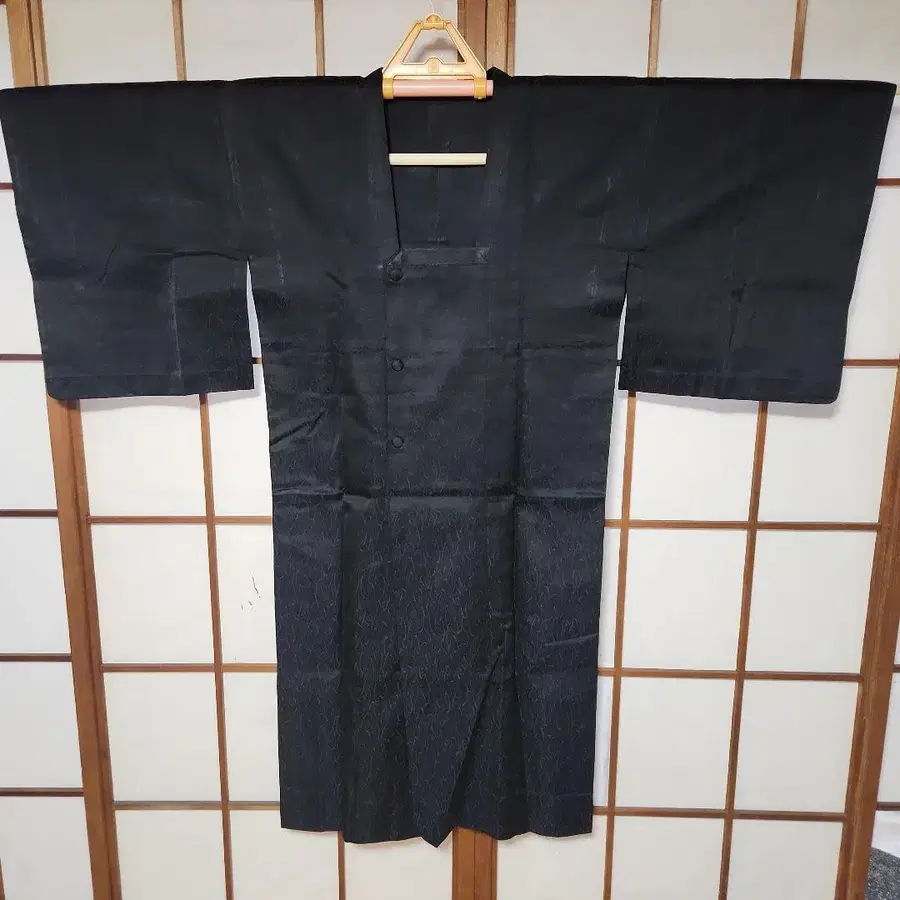 블랙 기모노 코트 무지 세밀한 네이비 컬러 무늬