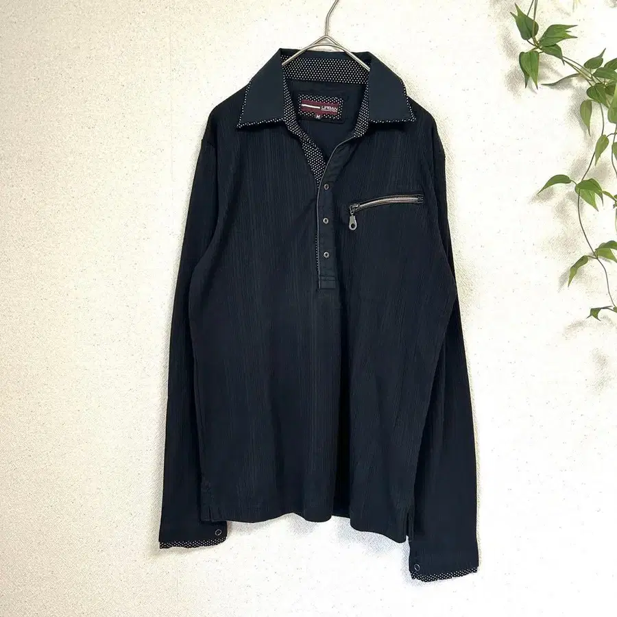 아름다운 실루엣 어반 컬렉션 리브 피케 셔츠 M 블랙 지퍼 도트 무늬