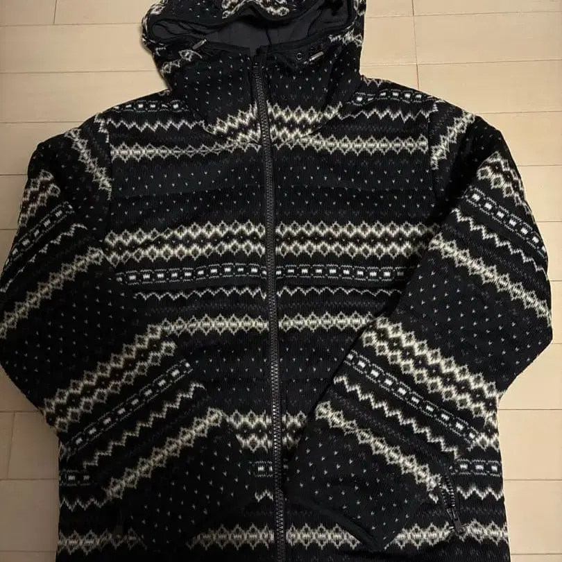 유니클로 플리스 자켓 M 사이즈 블랙과 화이트의 기하학 패턴