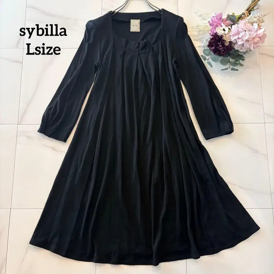 • 새상품 L 플리츠 원피스 롱 네이비 겨울 포멀 셔츠 동창회