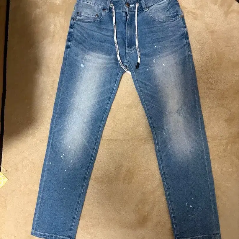 하드하지 않은 데미지 가공에 화이트 페인트를 뿌려 상쾌함이 가득한 데님 팬츠.