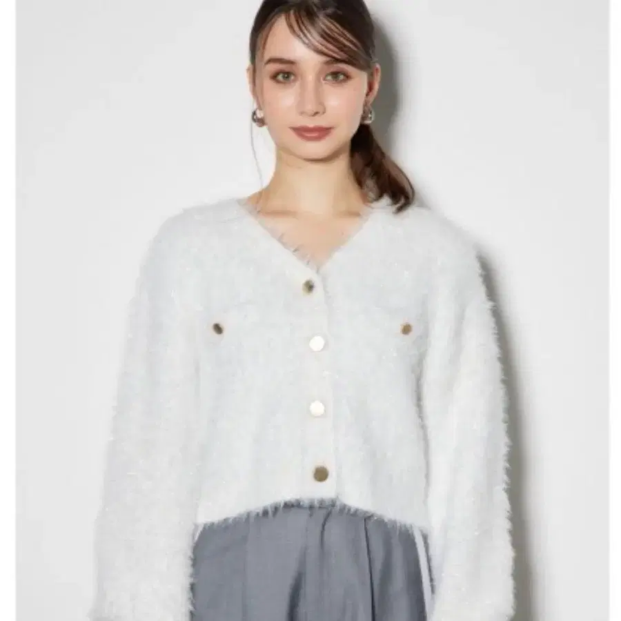 rienda 페이크 페더 라메 니트 자켓 가디건