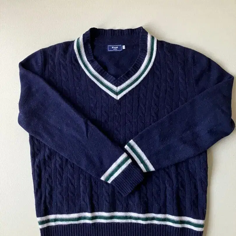 네이비 칠드런 스웨터 케이블 짜임 V넥