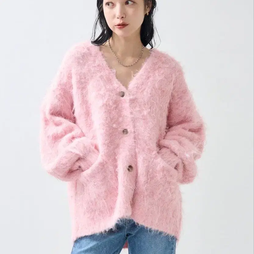프릭스스토어 샤기 니트 V넥 가디건