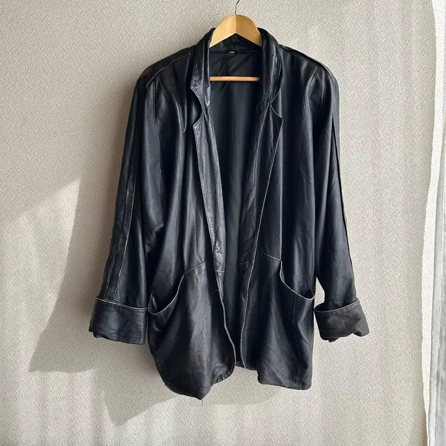 블랙 가죽 자켓 캐주얼 양가죽 오버 사이즈