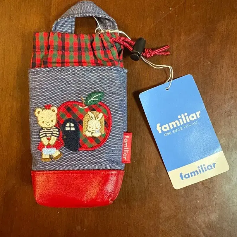 파밀리아 젤 케이스 빨간색 체크 데님 사과