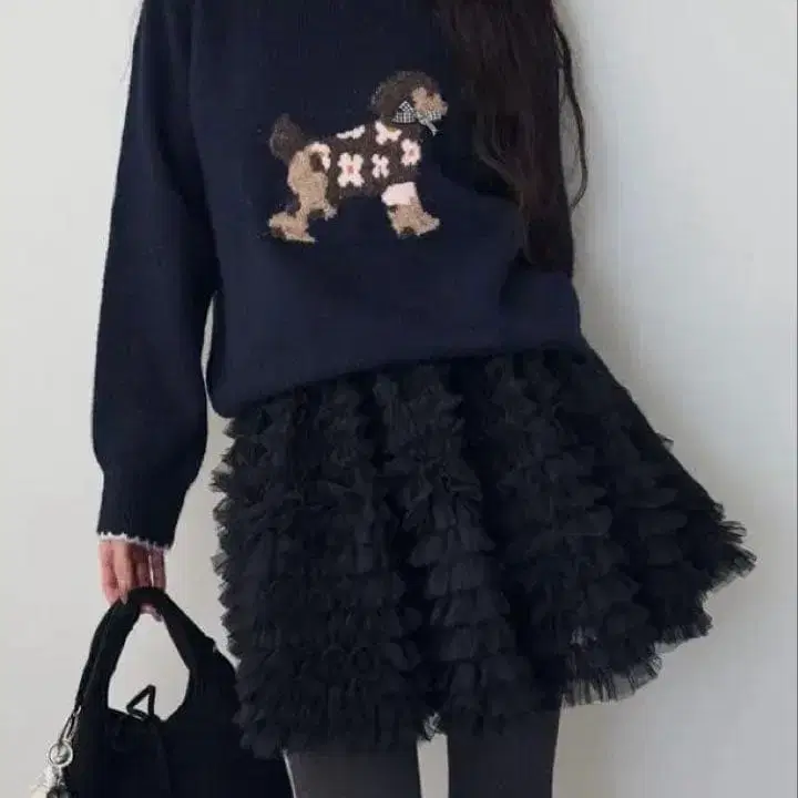 2025 신상 Frene 새상품 휘핑 튤 미니 스커트 블랙