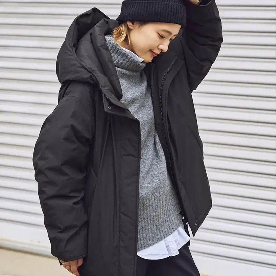 발수 후디드 다운 하프 코트