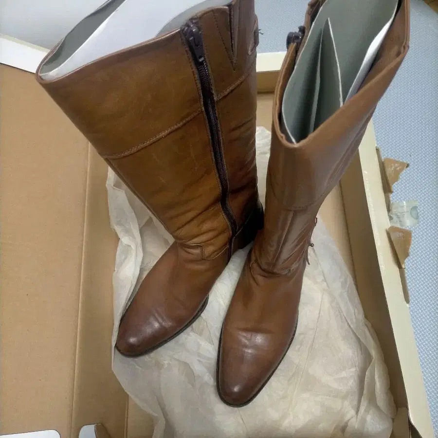 브라운 가죽 롱 부츠 24cm
