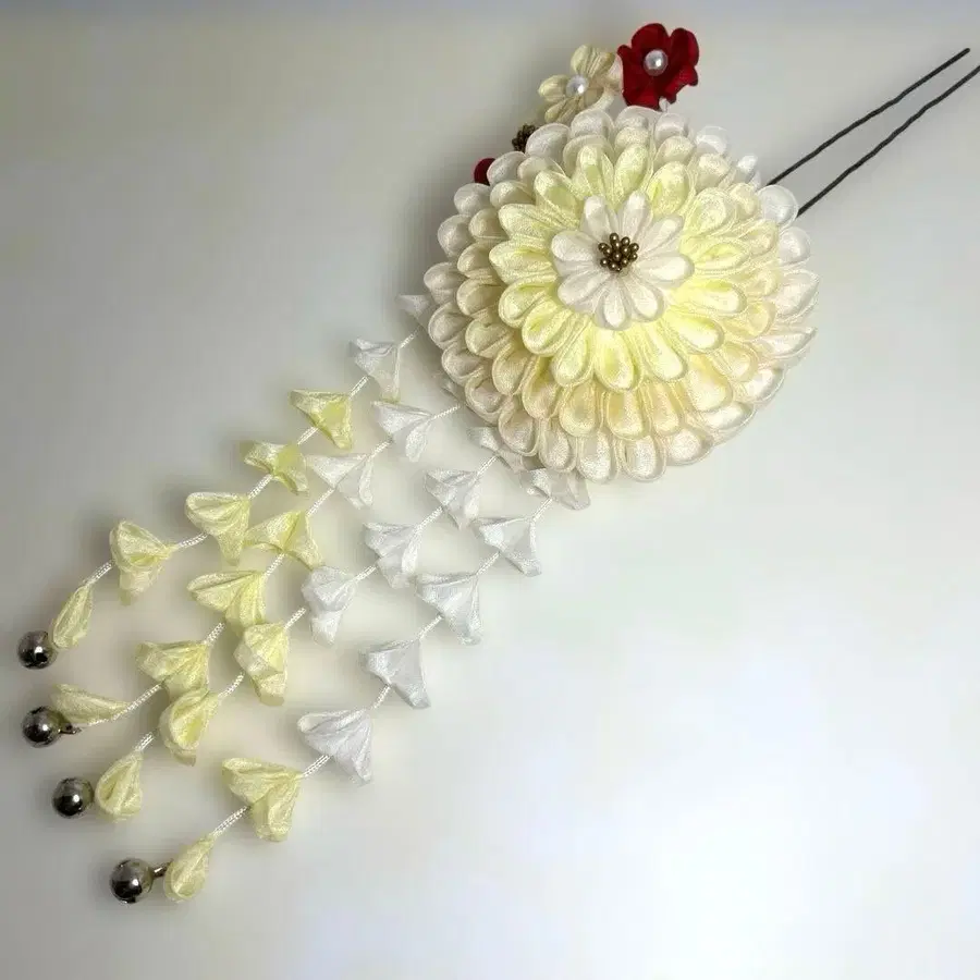 성인식 후리소데 머리 장식 헤어콤 츠마미자이쿠 화이트 옐로우 컬러 후리후