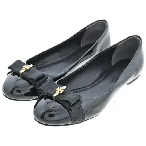 • [ 미사용 새상품 ] 미하라 리본 모티브 에나멜 스웨이드 펌프스 25cm