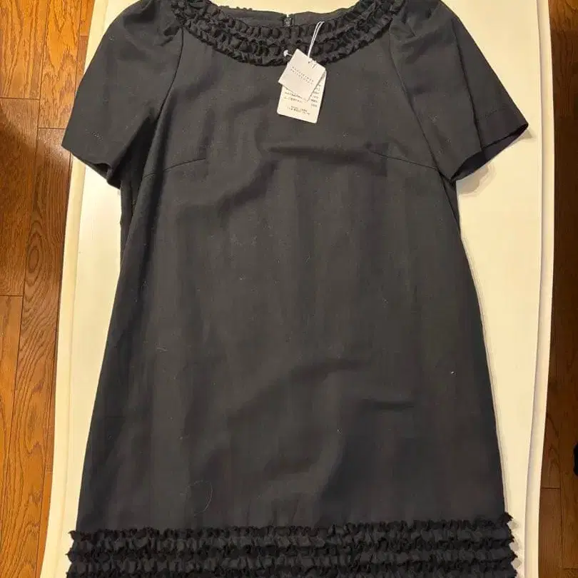 자동 번역되었어요. 원문보기프릴 디자인의 블랙 반팔 상의.