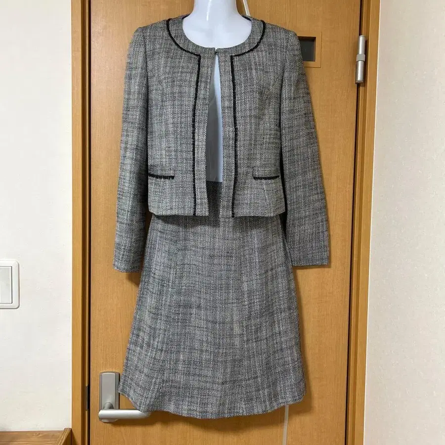 그레이 계열 트위드 스커트 수트