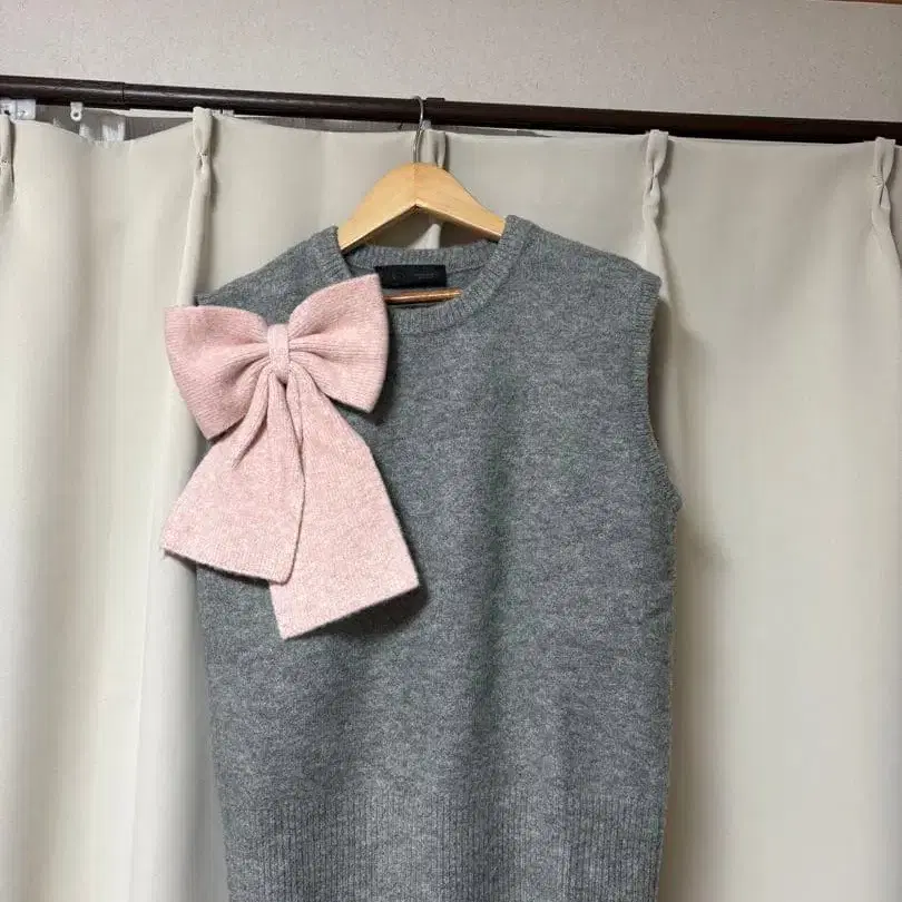 ZARA 그레이 슬리브리스 니트 핑크 리본