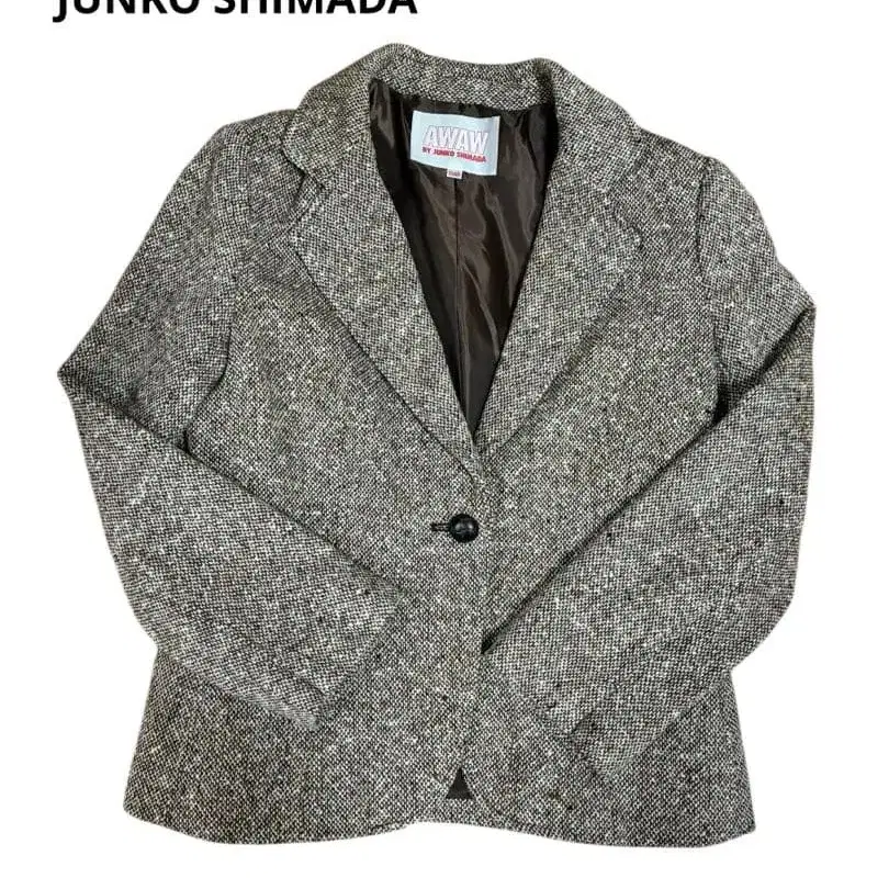 새상품급 준코 시마다 울 트위드 자켓 그레이 쇼와 레트로